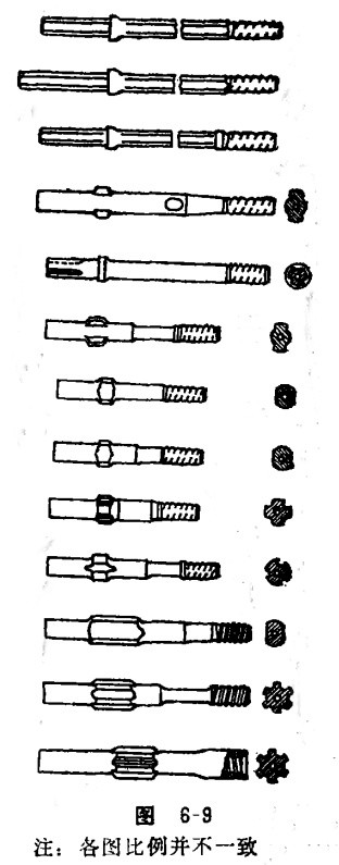 釬尾是聯(lián)結(jié)鑿巖機(jī)和釬桿的橋梁,是釬子插入鑿巖機(jī)的部分,它直接承受鑿巖機(jī)的沖擊能和回轉(zhuǎn)扭矩,并把其能量傳遞給釬具。從使用形式上,可把釬尾分為兩種類型,即一種是與釬桿連成一體的(參見(jiàn)圖6-1),一種是接桿···
